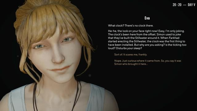 The biggest headache I had, which may/may not have been intended by the developers, is the fact that daily progress does not save unless you complete the day. That means, you need to wait until 2AM for that day's progress to save. If, for example, you jump back in time and alter a day's events, then time-jump to another day before 2AM, you'll have lost that day's progress. This issue caused me massive headaches, with annoying repetition, and nearly dried up all of my playthrough's sources of amalgam scattered in mirrors across all days before I figured it out. Day 2, in particular, proved to be difficult to get the results to stick into future days. Exacerbating this problem is the fact that the game tells you something along the lines of "my choice echoes into the future," which indicates that you should then move forward at any of the many given clocks scattered in important areas. DON'T DO IT! Sleep till 2AM, first. For this reason, the only place I used time travel was at the Stillwater.