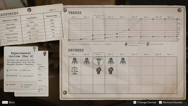 Fight for every new day. Ensure the town's survival by imposing your own rules: enforce quarantines, confiscate precious medicine, vaccinate the population, suppress riots, deploy patrols, and declare curfews.