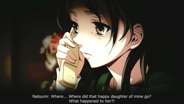 This title is a horror visual novel with point-and-click interaction. Contains excessive violence and gore depicted via full-screen art stills, textual descriptions, and Japanese-language voice-acting, specifically including the mutilation, torture, and murder of children. Also contains images of female anime-style characters with exposed underwear or cleavage, shown in restraints, or in one instance shown bathing together with strategically placed steam to cover up private areas. Numerous examples of foul language can be found in translated text, including slurs such as "b*tch" and heavy swears such as "f*ck."