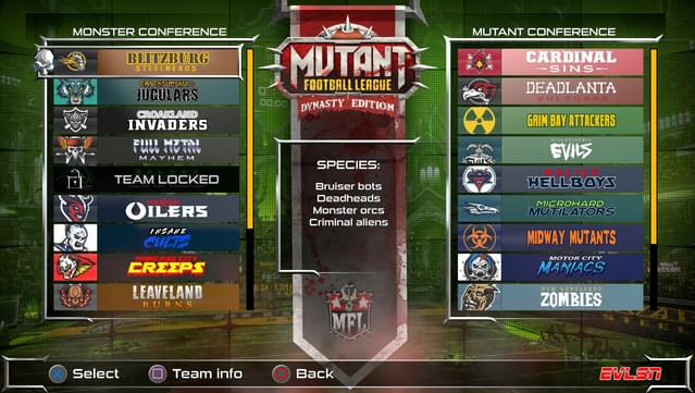 Dynasty Mode is a single player experience where you become the coach and GM of your favorite Mutant Football League team and take a group of unproven rookies and turn them into monstrous all-stars by winning multiple Mayhem Bowls over several seasons to become the league’s next Dynasty.