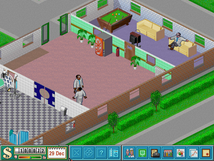 If there is one word that describes Theme Hospital then it has to be “hilarious.” Almost everything in this game is made with great dose of humour. You might think that someone's illness is not a laughing matter but wait till you see a patient with KingComplex dressed as Elvis or serious case of Hairyitis caused from prolonged exposure to the moon. Finding treatments for such diseases is a part of your job, but there’s no prescription to cure the insanity that may result from trying to figure out those cures. You start off small with an empty building, a few doctors, a general diagnostic, a pharmacy, a reception desk, and a few other necessities. From there it’s up to you to move your way up in the health care industry.